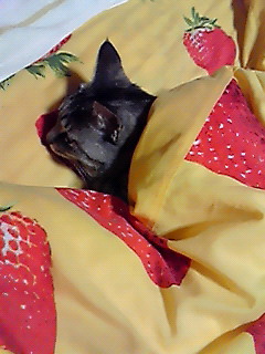 ミルクたらふく飲ませて車に乗せてきたら車酔いして、ウチに着くなりコタツでゲロっと・・・。