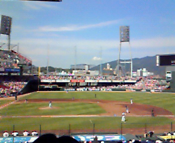 ピッチャーは前田健太なんですが、まだ若い選手だから観客も寛容なようで・・・。